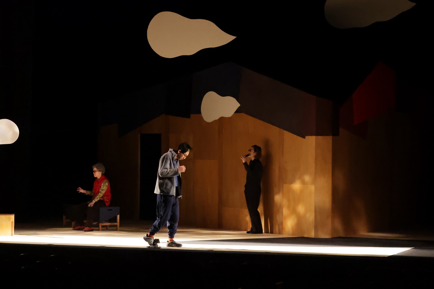 35年ほど芝居をやってきましたが、初めて大学の学生たちと演劇を作りました。演劇を学んでいるものもいれば、文芸、映画、デザインを専攻しているものまで舞台にあげてしまいます。だから言ってしまえば純然たる素人と芝居を作ろうというのです。素人でもありZ世代でもある彼ら。初めはあまりの共通言語のなさに、戸惑い、あまりの体の弱さに心配し・・・気がつけば、東京に帰っても延々彼らのことを考え続けているのです。彼らがどうすればこの1年で「なにかをへて」「なにかをえて」くれるのか、ああだこうだと思い、試行錯誤の日々でした。正直、苦しかった。それでも、思えば自分もデザイン学科の身ながら、大学時代演劇に出会い、そのおもしろさにのめりこみ、今があるわけです。 ズブの素人でした。そう思えば、なにやら彼らが愛おしく、演劇のとてつもない魅力を少しでも感じてもらやあいいじゃないかと開き直り、なんとかここまで漕ぎ着けました。自分が彼らを成長させられたのか、彼らが自分を成長させてくれたのか。それは、きっとおいおいこの先、わかってくるのだと思います。