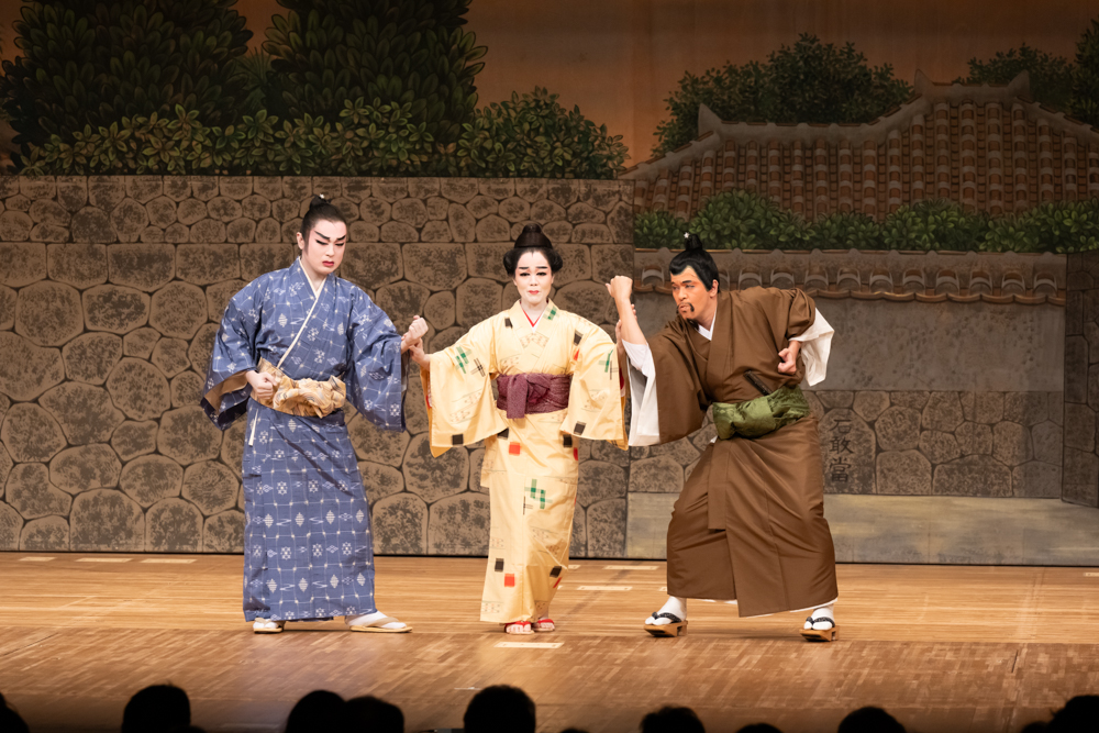 琉球王朝時代の式楽「組踊(くみおどり)」、格式高い古典から市井の日常をえがく雑踊(ぞうおどり)まで幅広い作品がある「琉球舞踊」、琉球芸能の流れをくみ明治以降にうまれた「沖縄芝居(歌劇)」。この三本柱で、時代の変遷とともに脈々とうけつがれた琉球芸能の魅力を春秋座でお届けします。_