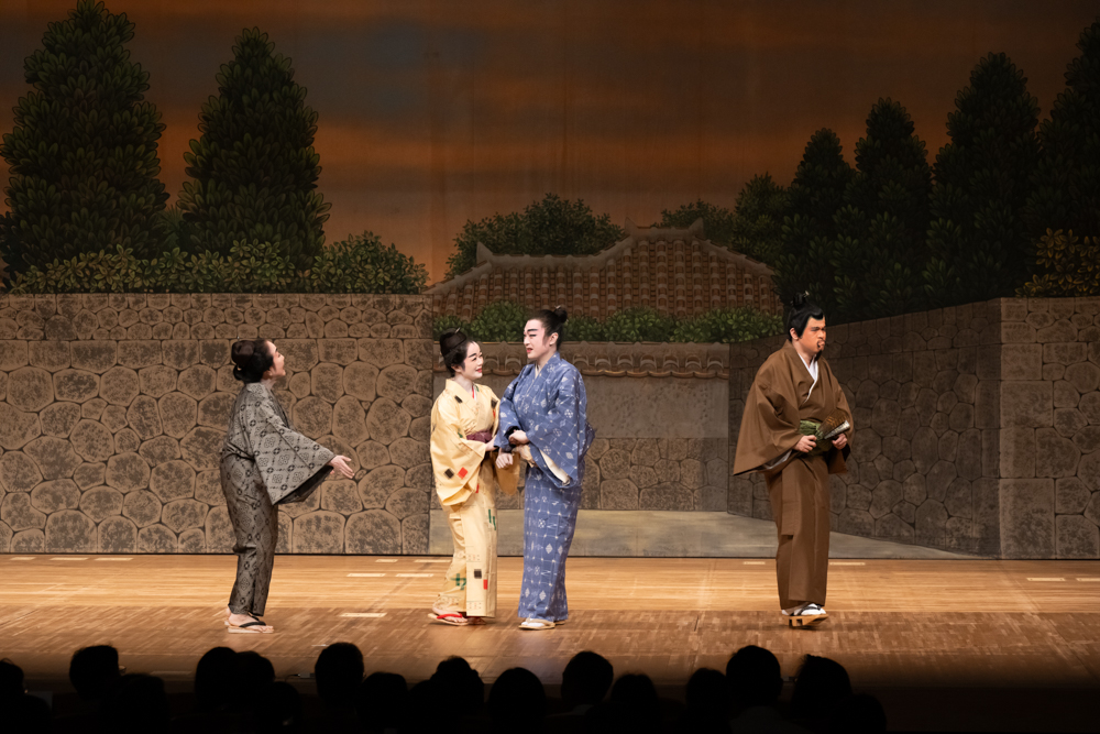 多数の沖縄芝居を世に送り出した、伊良波尹吉の作品です。この作品は、歌劇の醍醐味のひとつである「ツラネ」の技法が多く使用されており、舞踊的な表現も見どころです。美貌の遊女チル小と、チル小を身請けしようと企む主ぬ前、チル小と相思相愛の若侍、登場人物それぞれの「想い」が明るく描かれています。