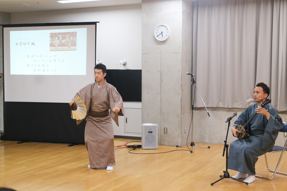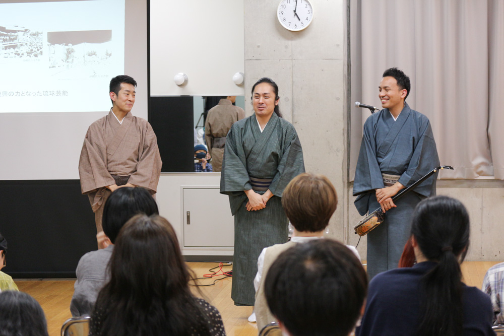 「国立劇場おきなわ」の金城真次芸術監督をはじめとする若き実力派演者を講師にお招きし、ユネスコの世界無形文化遺産である「組踊(くみおどり)」*、国の重要無形文化財「琉球舞踊」、琉球芸能の流れを汲み明治以降にうまれた「沖縄芝居」の実演や所作の体験を通して、琉球芸能の魅力、豊かさに触れていただきます。