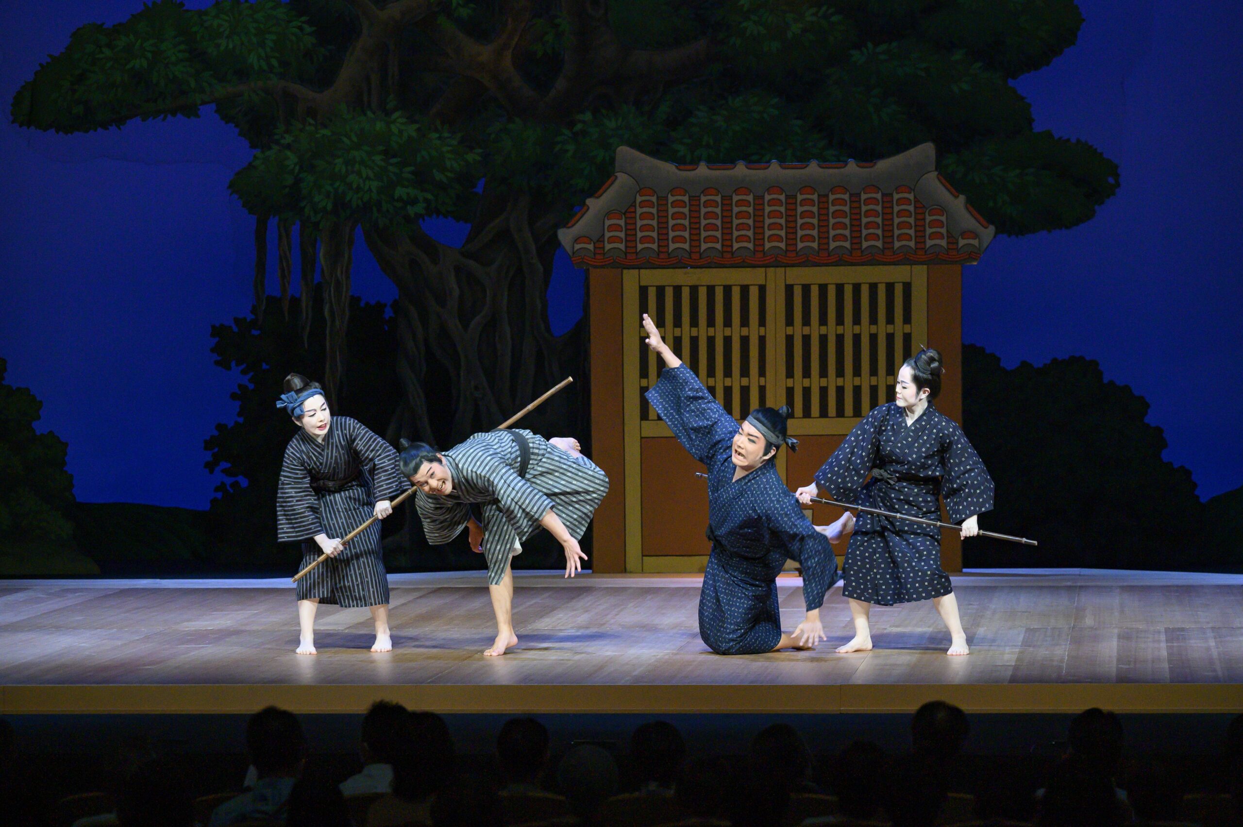 琉球王朝時代、王の代替わりの際に中国から訪れる使者・冊封使をもてなすためにうまれた式楽「組踊」(くみおどり)。同じく宮廷でうまれた格式高い作品から、市井の生き生きとした暮らしを描いた作品まで、彩り豊かなラインナップをそろえる琉球舞踊と喜歌劇を、今年も春秋座で披露します。