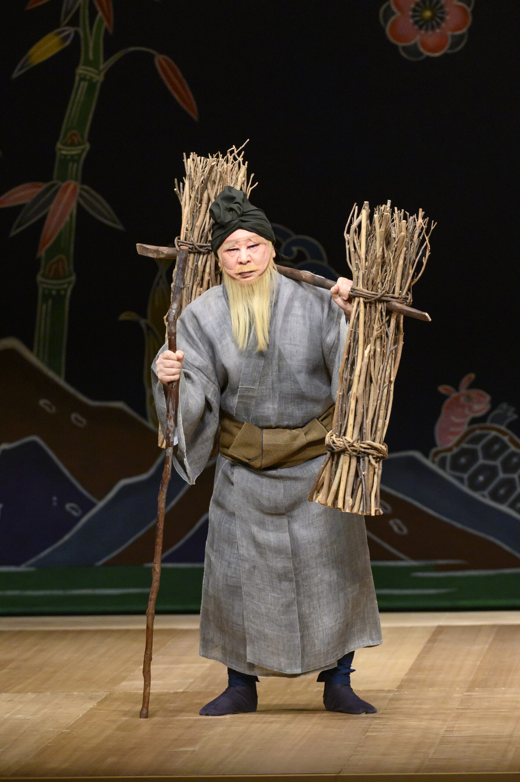 敵討物や孝行物が多い組踊の中で、親子や夫婦の情愛を描いた名作として愛されている作品です。髙宮城親雲上(たかなーぐしくぺーちん)の作品とされ、生活苦により離ればなれに暮らさざるを得なかった家族の再会が描かれており、猿引と猿の芸や、薪木取の名台詞など、独自性に富んだ見どころ聞きどころが多い作品です。