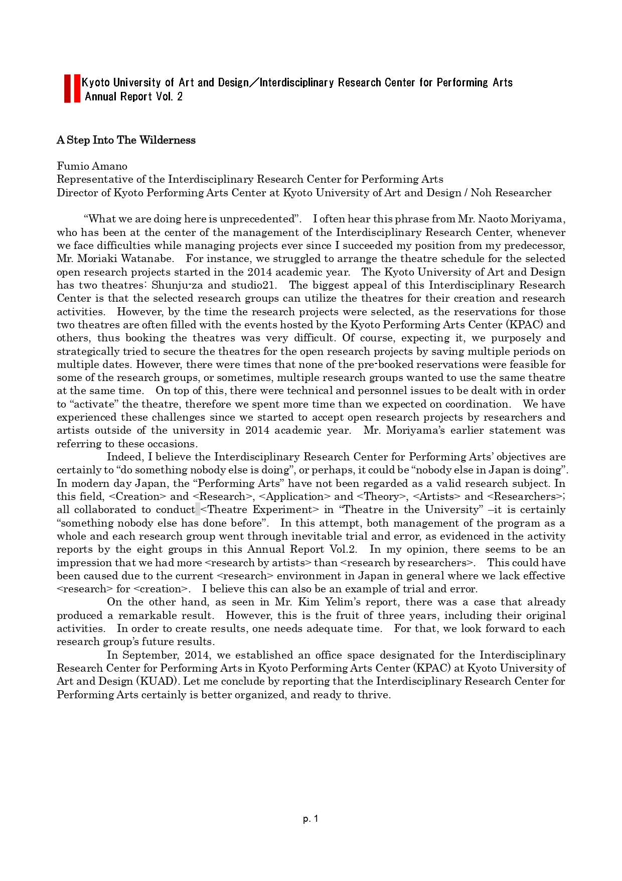 Interdisciplinary Research Center for Performing Arts Annual Report