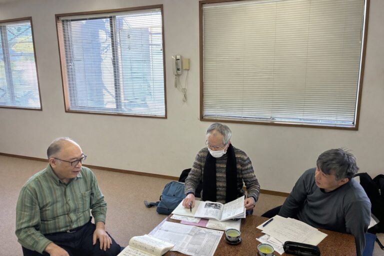 写真左よりシテ方観世銕之丞さん、舞台監督の小坂部恵次さん、照明デザインの藤原康弘さん